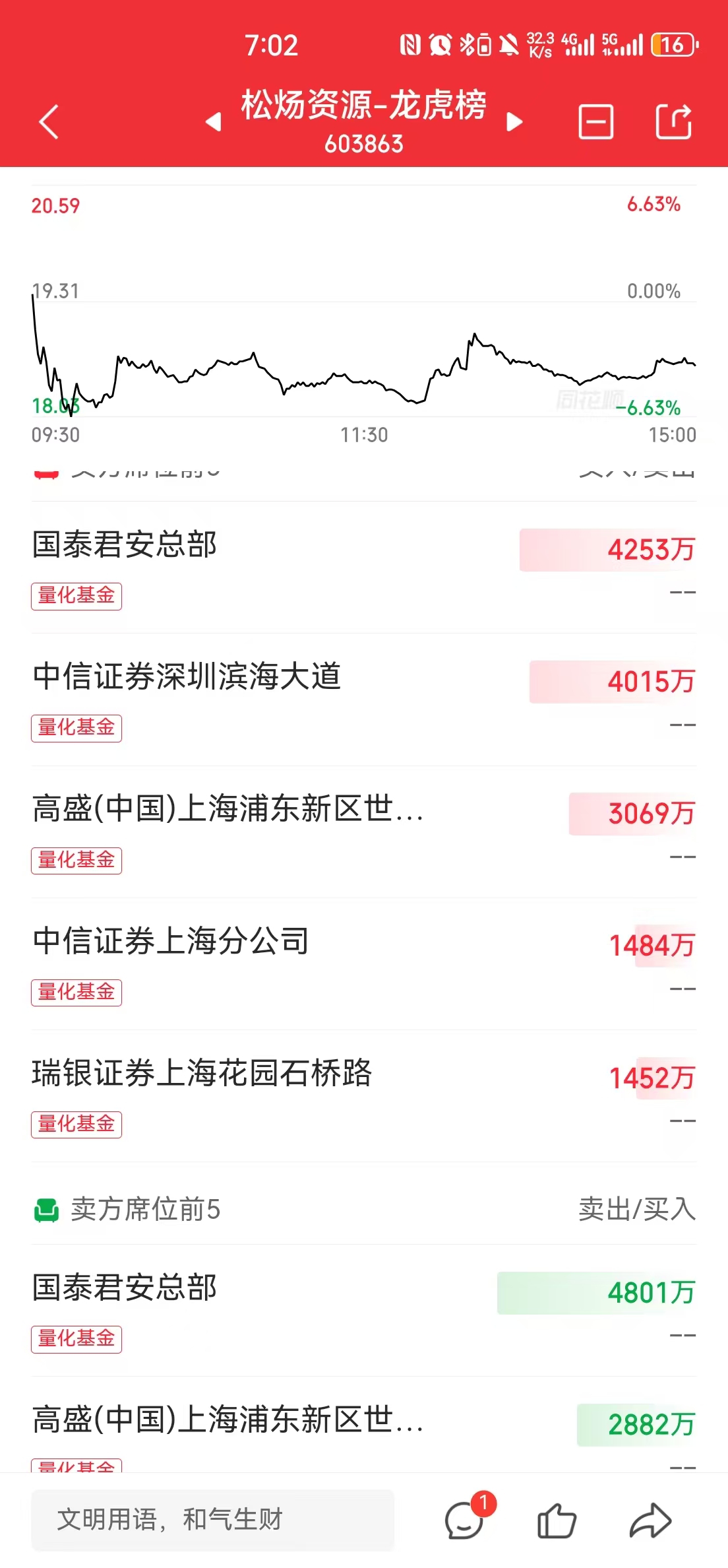 $松炀资源(SH603863)$ 全是一堆量化,怎么玩的过机器代码?有这空选更好的不香?