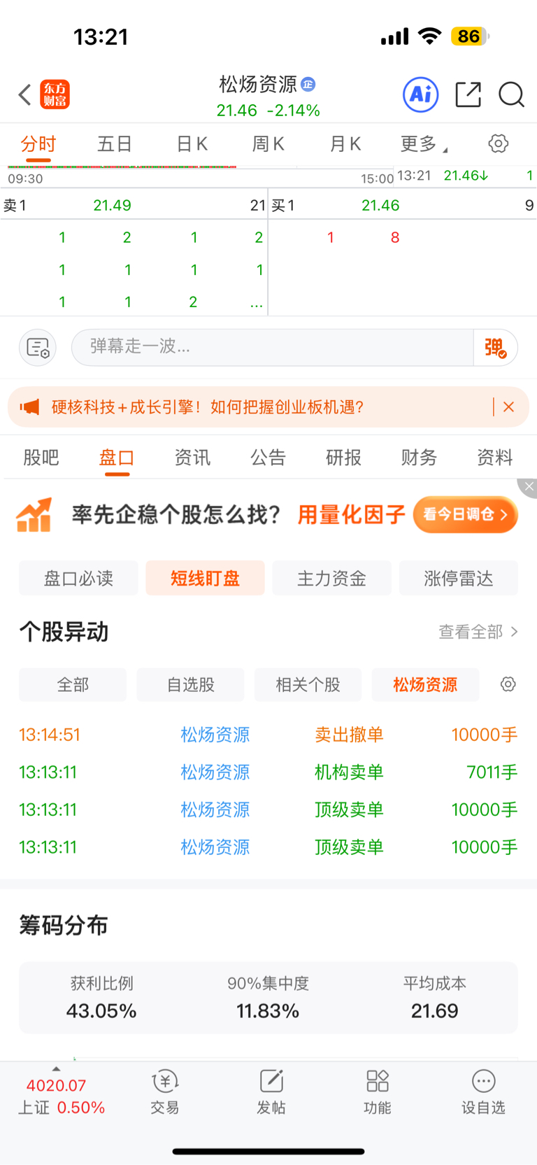 $松炀资源(SH603863)$ 快跑机构都走路了。阴跌开启