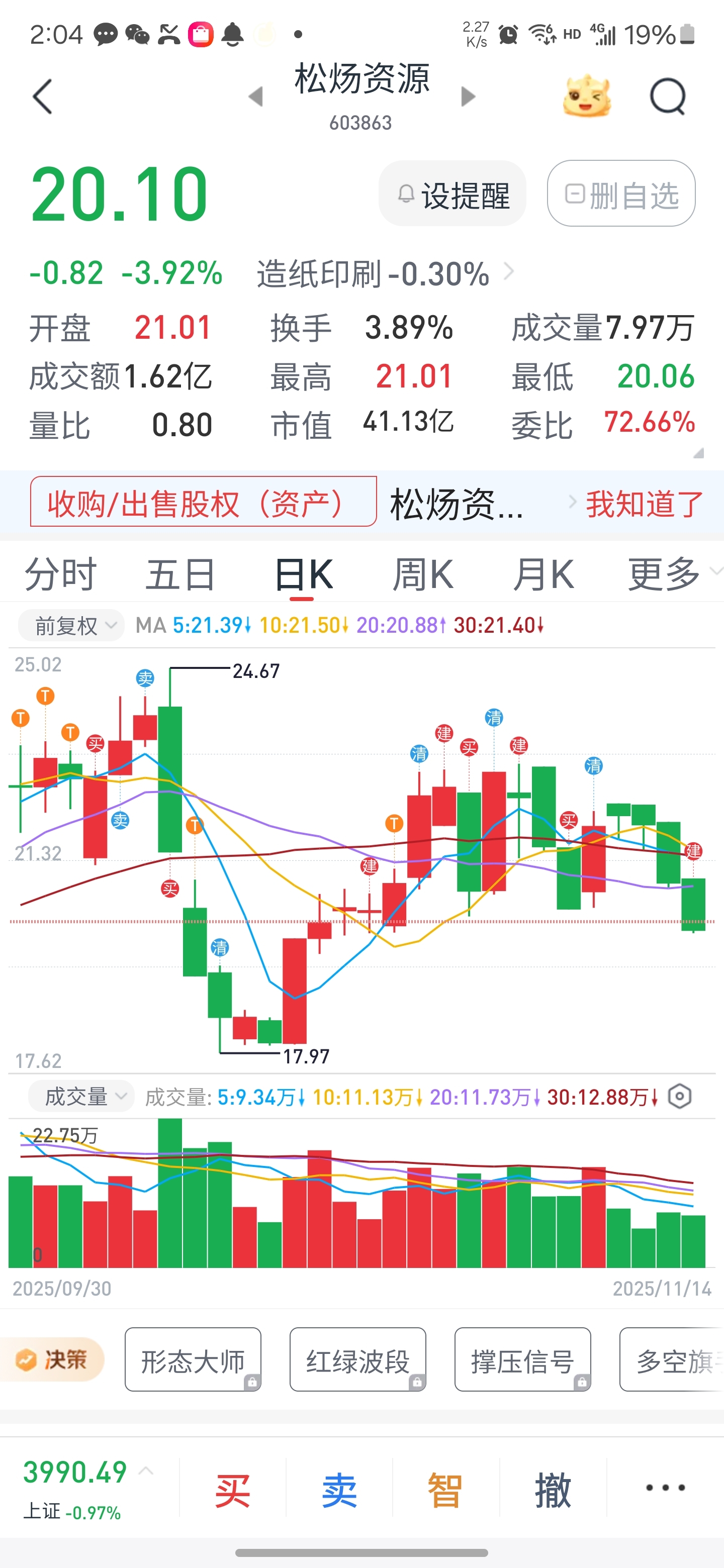 $松炀资源(SH603863)$ $ST葫芦娃(SH605199)$ $中化岩土(SZ002542)$