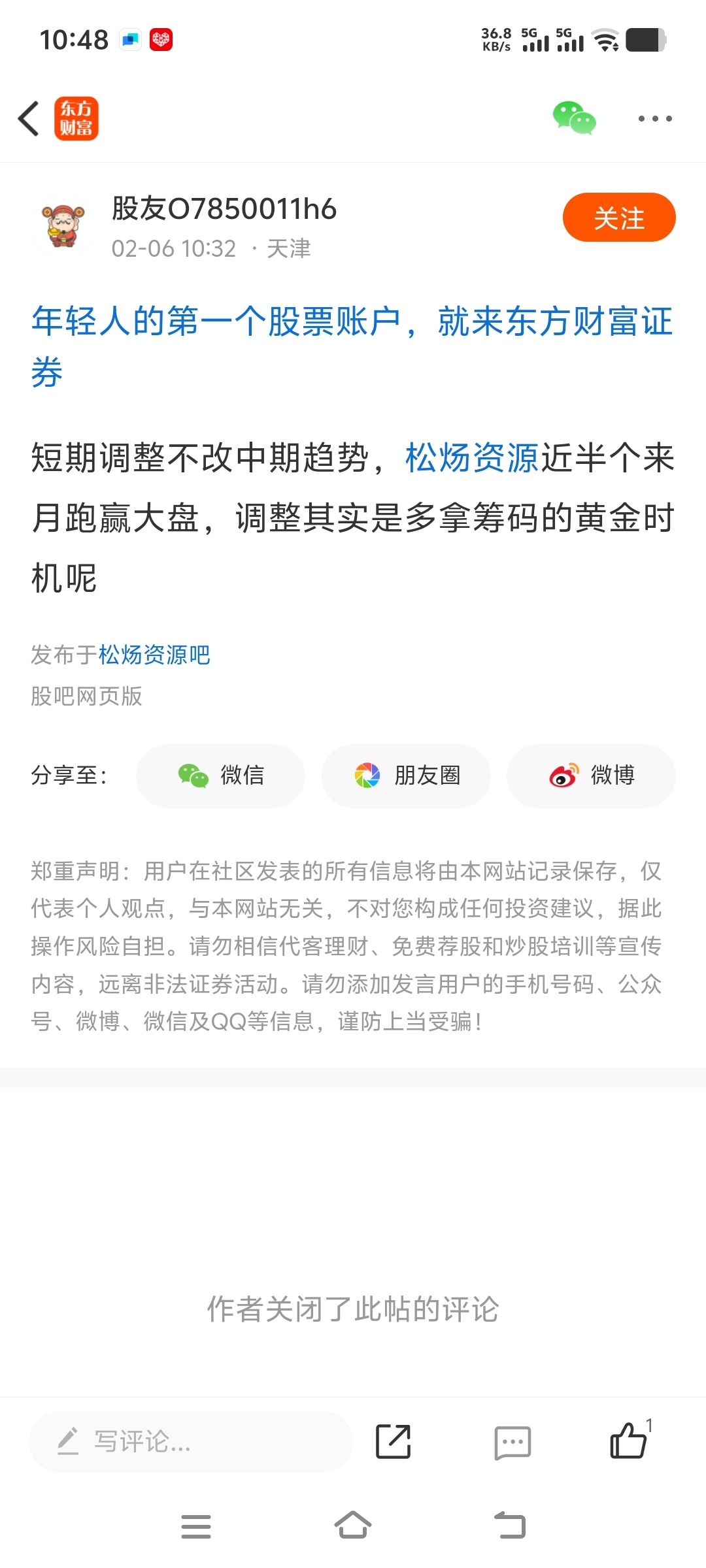 温馨提示: 1.根据《证券法》规定,禁止编造、传播虚假信息或者误导性信息,扰乱证券市场;2.用户在本社区发表的所有资料、言论等仅代表个人观点,与本网站立场无关,不对您构成任何投资建议。用户应基于自己的独立判断,自行决定证券投资并承担相应风险。《东方财富社区管理规定》