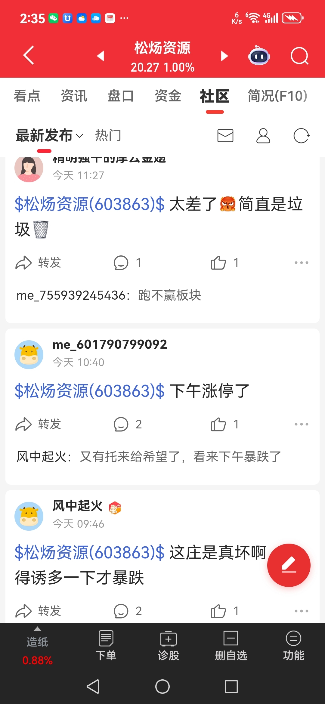 温馨提示: 1.根据《证券法》规定,禁止编造、传播虚假信息或者误导性信息,扰乱证券市场;2.用户在本社区发表的所有资料、言论等仅代表个人观点,与本网站立场无关,不对您构成任何投资建议。用户应基于自己的独立判断,自行决定证券投资并承担相应风险。《东方财富社区管理规定》