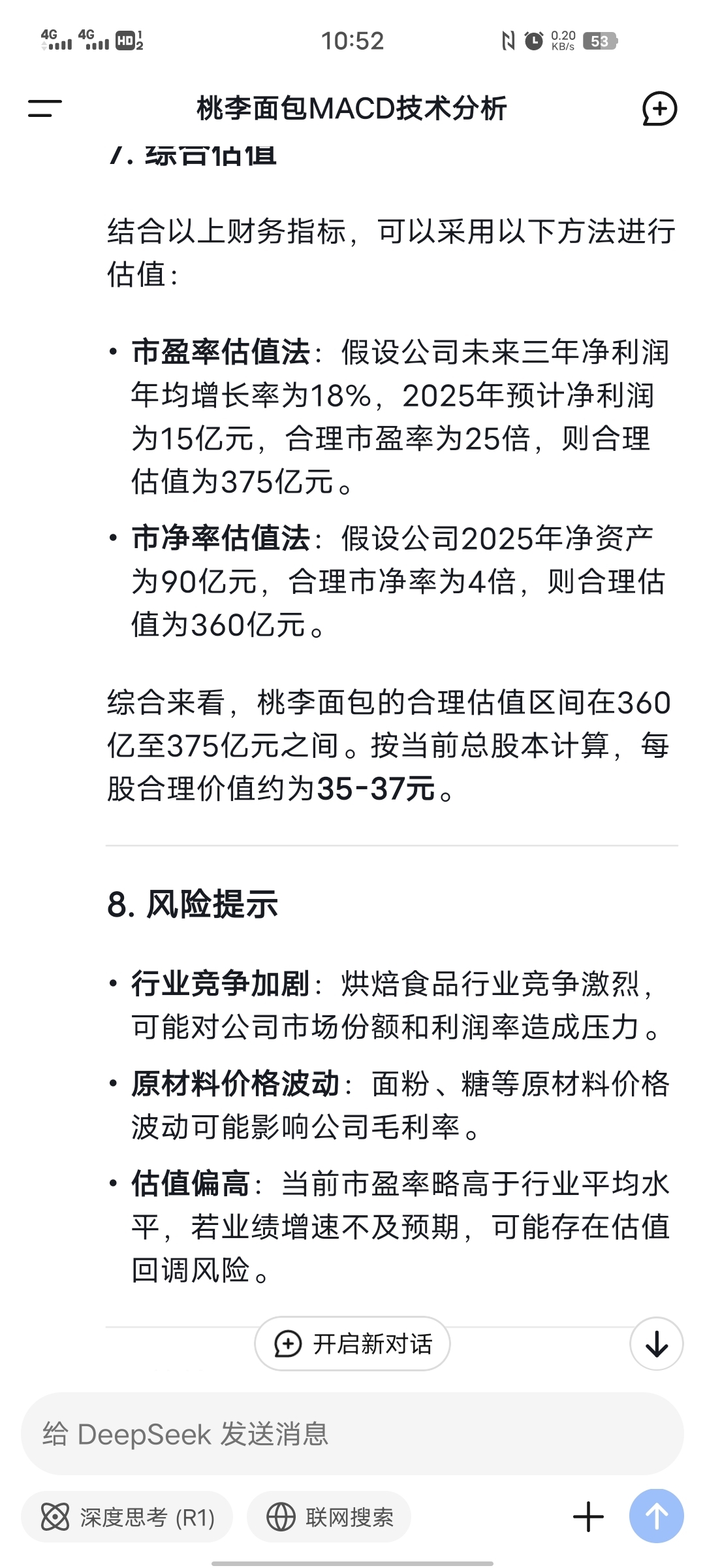 deepseek给桃李面包估值370亿