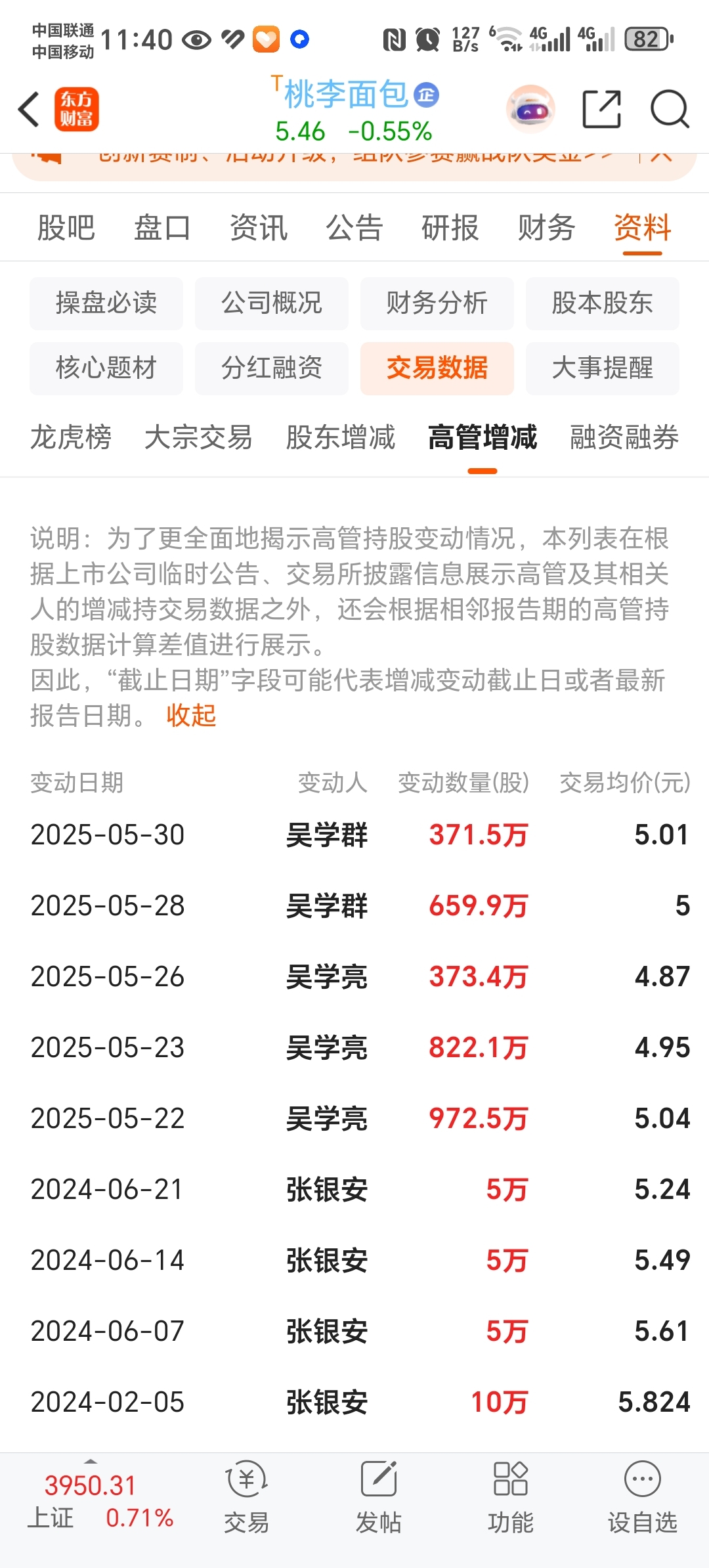 $桃李面包(SH603866)$ 一堆高管都在五块钱左右重仓抄底,咱们小散还有什么理由在低位割肉?越跌越买,早晚会轮到咱们的消费股上涨的