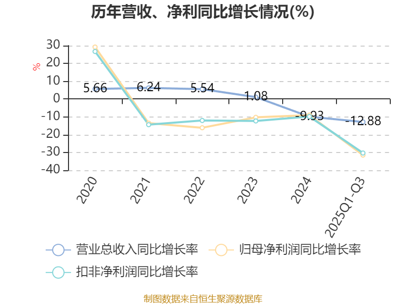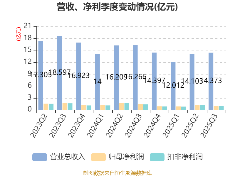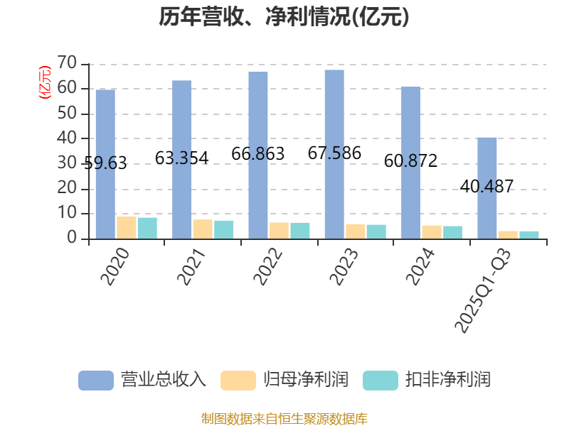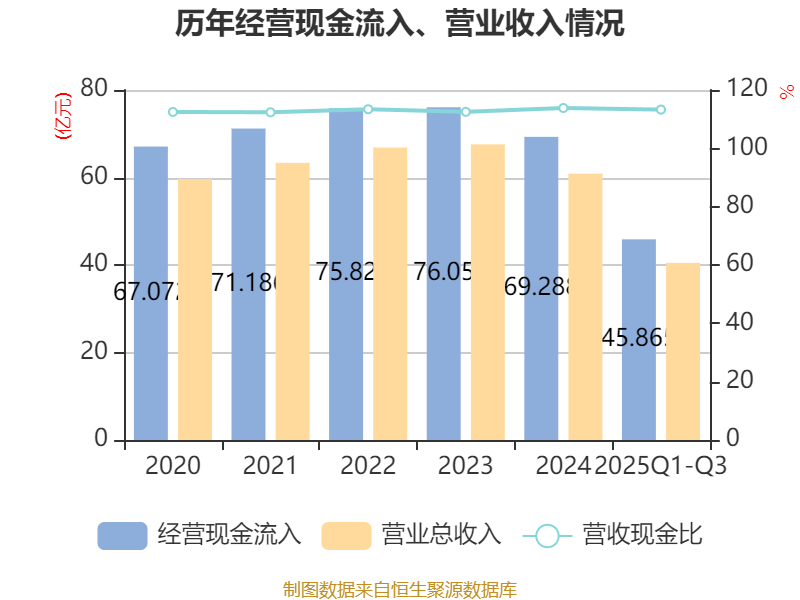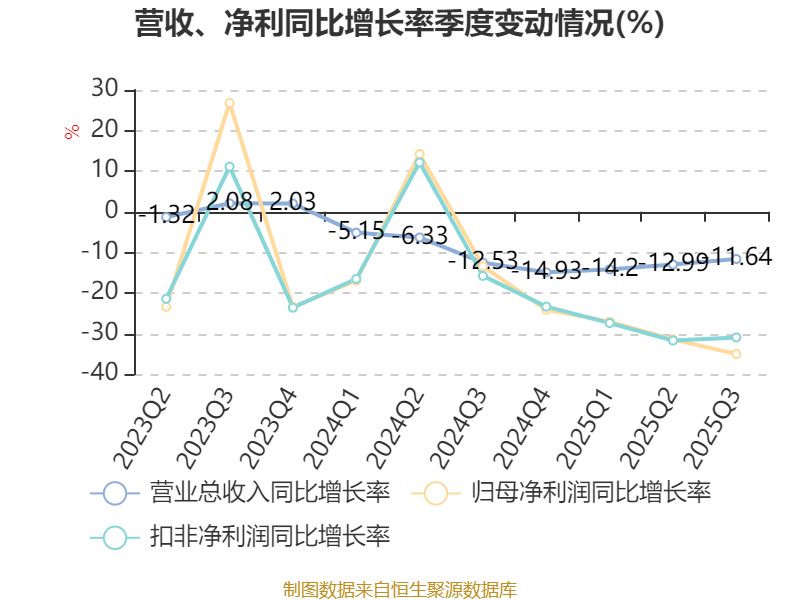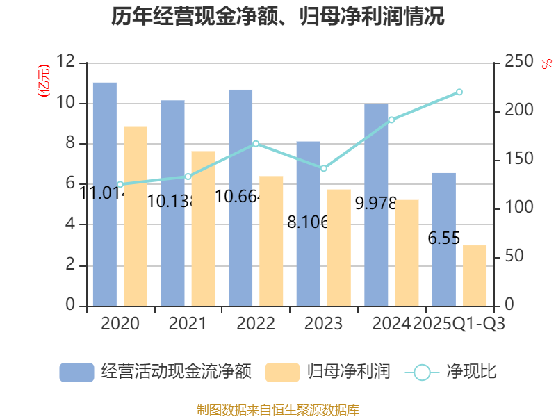 2025年前三季度,公司经营活动现金流净额为6.55亿元,同比下降4.23%;筹资活动现金流净额-2.27亿元,同比增加2.07亿元;投资活动现金流净额-3.94亿元,上年同期为-1.77亿元。