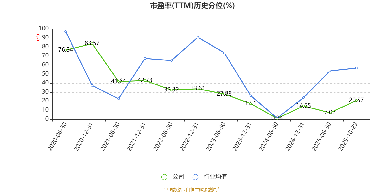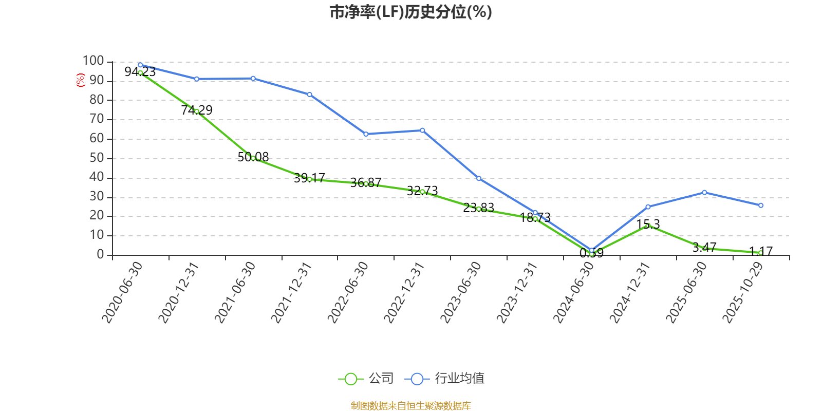 市盈率、市净率为负时,不显示当期分位数,会导致折线图中断。