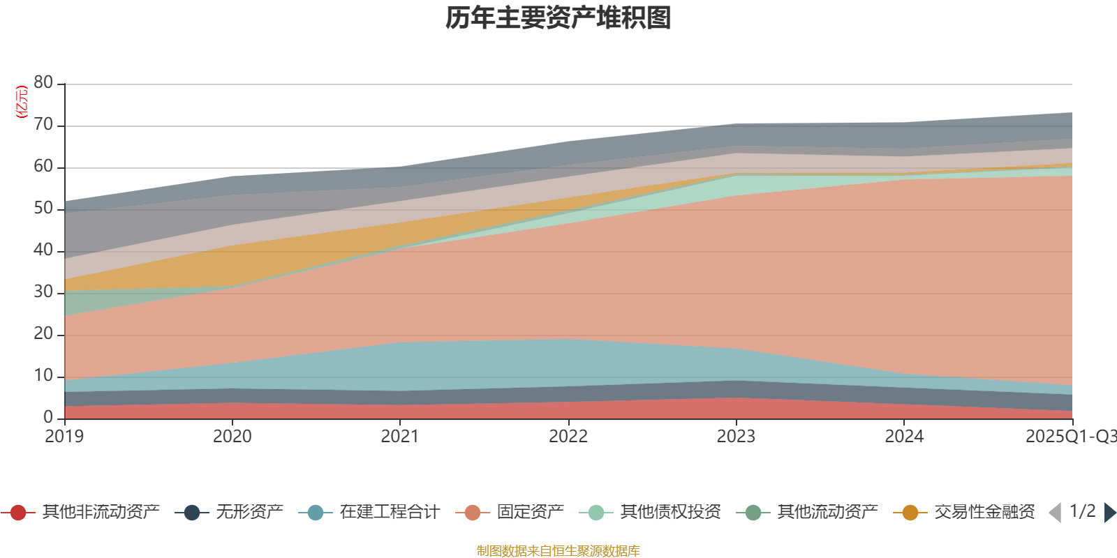 资产重大变化方面,截至2025年三季度末,公司固定资产较上年末增加8%,占公司总资产比重上升2.93个百分点;其他非流动资产较上年末减少47.22%,占公司总资产比重下降2.37个百分点;在建工程合计较上年末减少32.44%,占公司总资产比重下降1.63个百分点;其他债权投资较上年末增加115.25%,占公司总资产比重上升1.43个百分点。