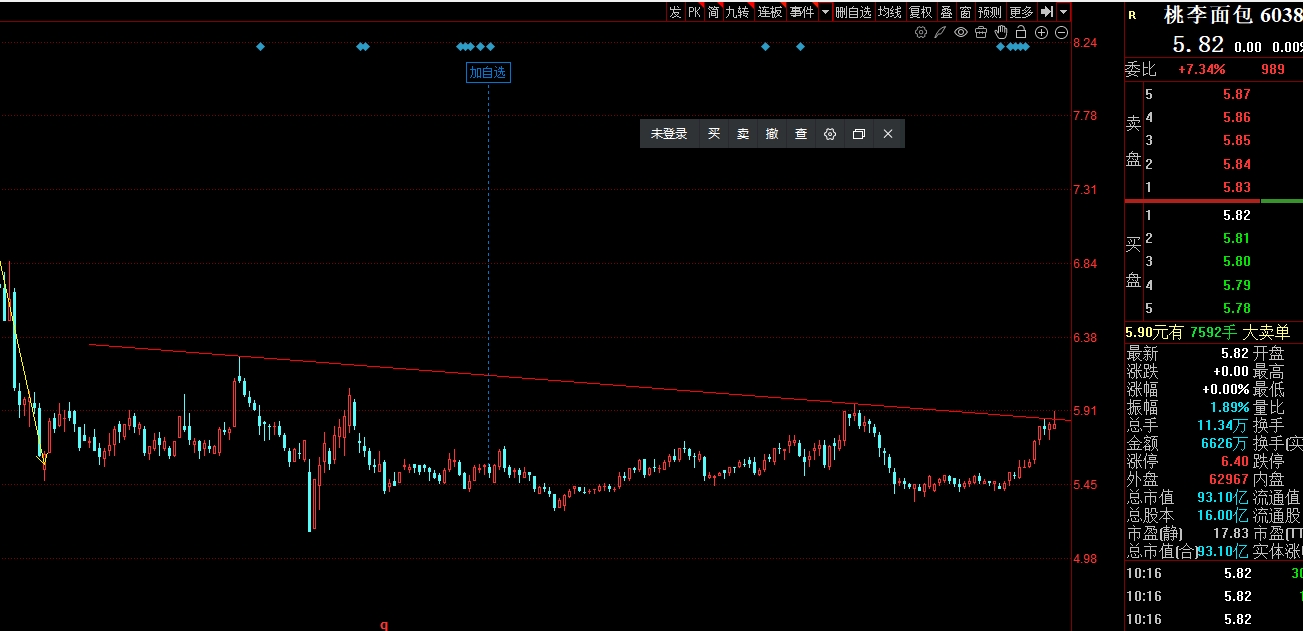 $桃李面包(SH603866)$ 5.85这里是个短期压力位,突破这里的话,会到6.55元