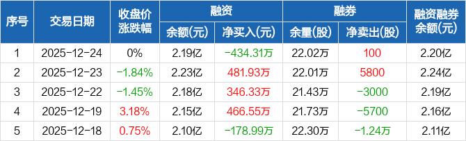 桃李面包:融资净偿还434.31万元,融资余额2.19亿元(12-24)