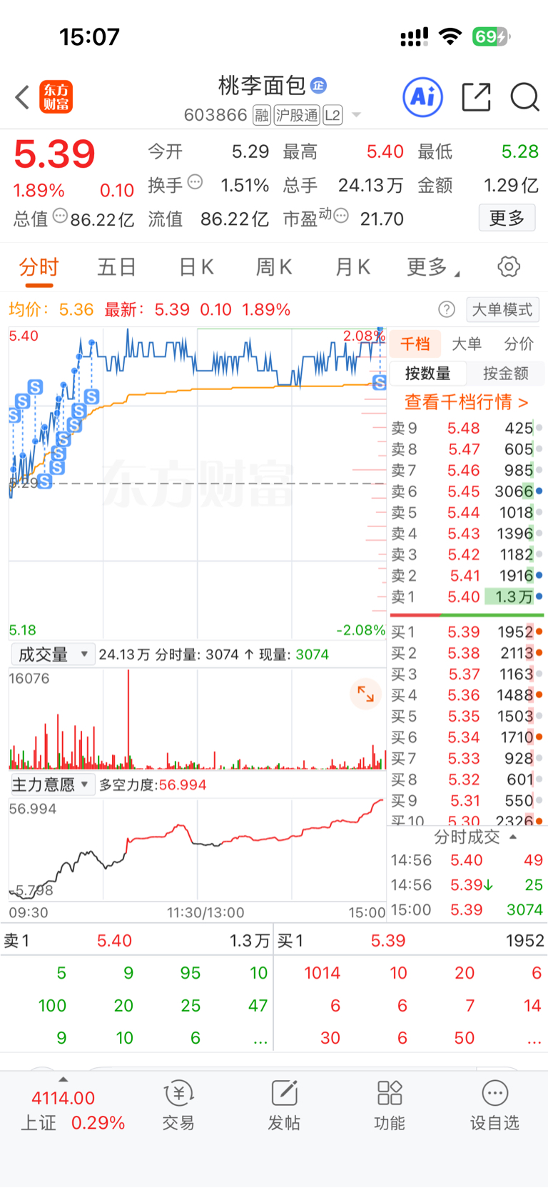 $桃李面包(SH603866)$ 这票就没法做T
