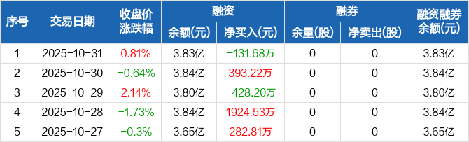 新化股份:融资净偿还131.68万元,融资余额3.83亿元(10-31)