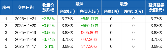 新化股份:融资净偿还545.17万元,融资余额3.77亿元(11-21)