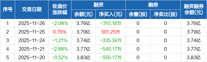 新化股份:融资净偿还310.18万元,融资余额3.76亿元(11-26)