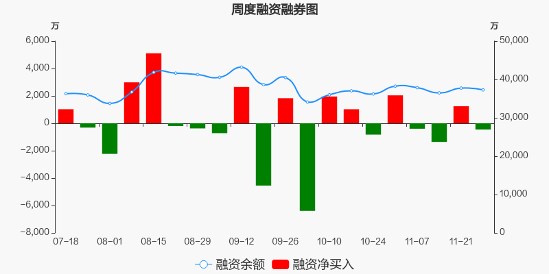新化股份本周(2025/11/24-2025/11/28)累计跌幅达1.36%,截至11月28日最新股价报收27.65元。从增量上来看,11月24日至11月28日融资买入交易规模7058.23万元,融资偿还规模7514.27万元,期内融资净偿还456.04万元。从存量上来看,截止11月30日,新化股份融资融券余额3.73亿元,其中融资余额规模3.73亿元,融券余额规模0元。
