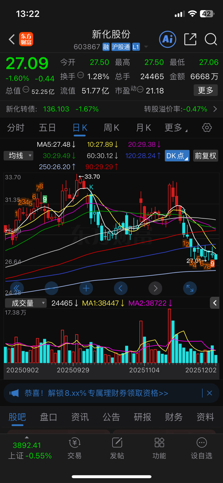 $新化股份(SH603867)$ 没跌够?