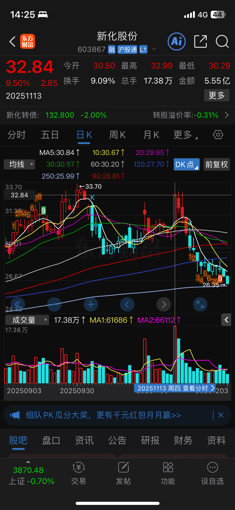$新化股份(SH603867)$ 这么好的量成了变盘信号!