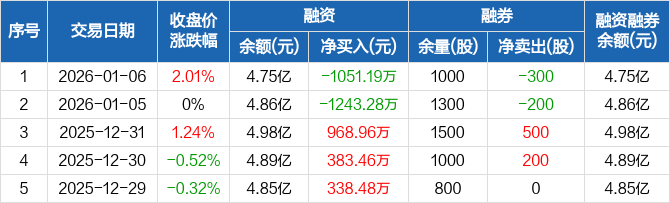 新化股份:融资净偿还1051.19万元,融资余额4.75亿元(01-06)