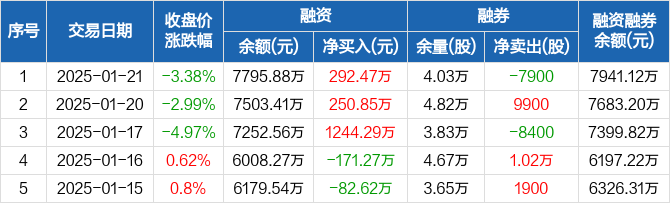 飞科电器:连续3日融资净买入累计1787.61万元(01-21)