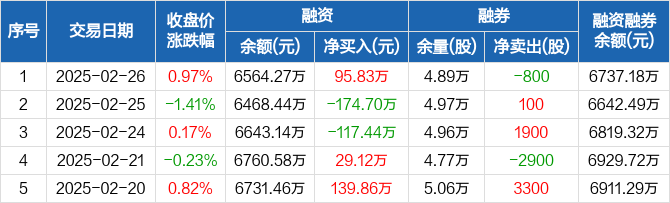 飞科电器:融资净买入95.83万元,融资余额6564.27万元(02-26)