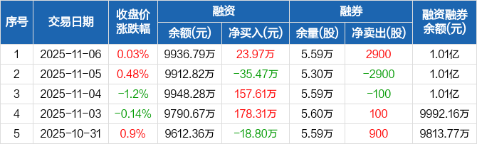 飞科电器:融资净买入23.97万元,融资余额9936.79万元(11-06)