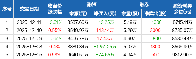飞科电器:融资净偿还12.25万元,融资余额8537.66万元(12-11)