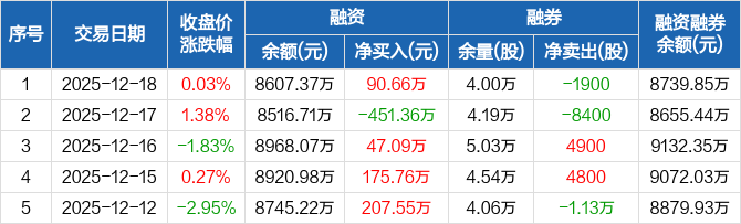 飞科电器:融资净买入90.66万元,融资余额8607.37万元(12-18)