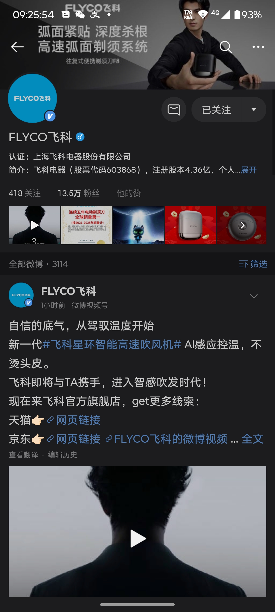 王一博商业第一人代言飞科全系,业绩预估增涨同比一季度238%