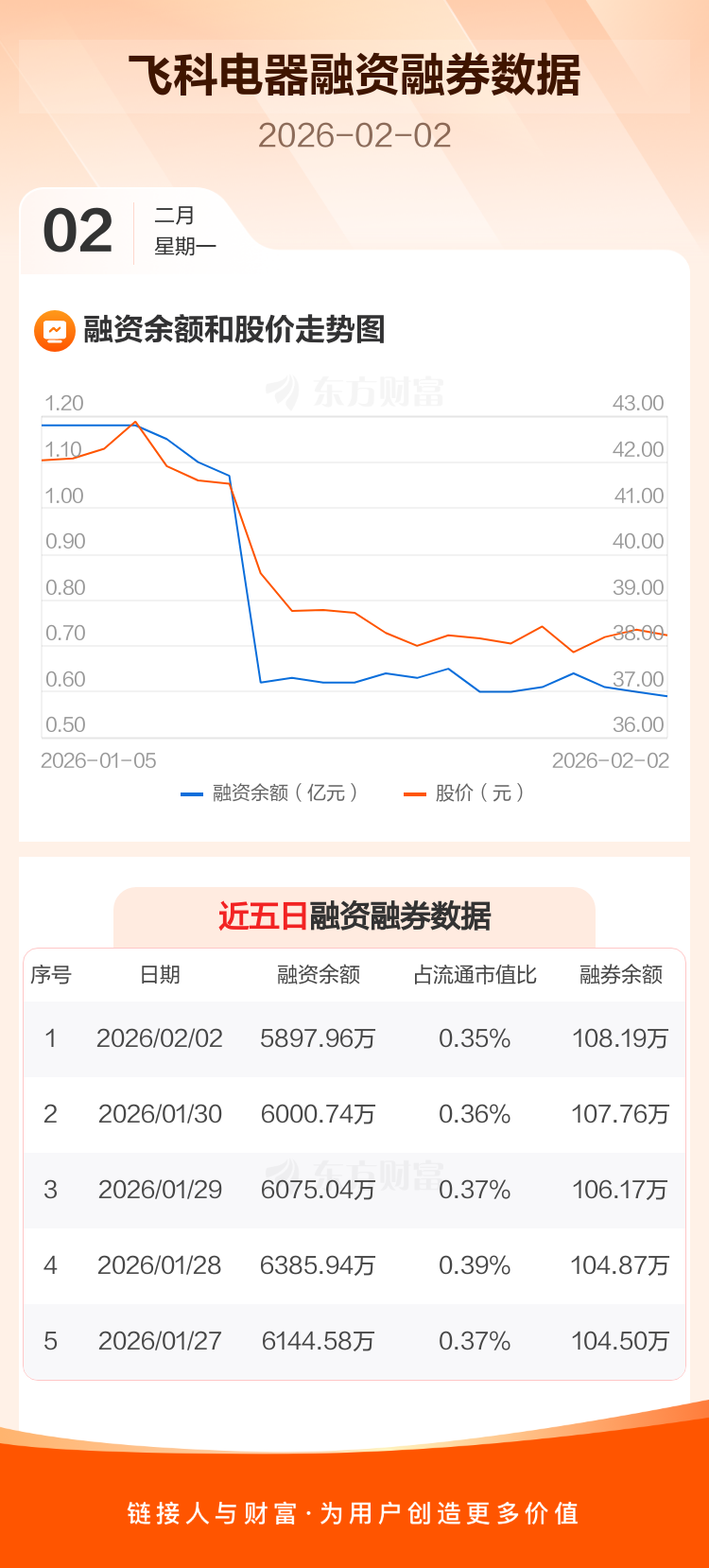 交易所最新数据显示,飞科电器于2026年2月2日获融资买入415.50万元,融资偿还518.28万元,当日融资净偿还102.78万元。目前,该股融资余额5897.96万,占流通市值比例为0.35%。