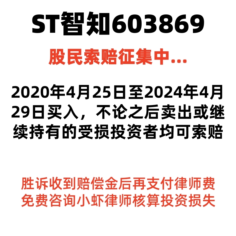 $ST智知(SH603869)$ 2020年4月25日至2024年4月29日之间买入603869新智认知,且在2024年4月30日(含当日)之后卖出或继续持有者均可索赔。@索赔倒计时 以上索赔条件仅为律师团队初步判断,最终以法院判决为准,不构成任何投资决策和买卖建议。