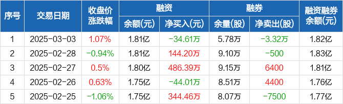 嘉友国际:融资净偿还34.61万元,融资余额1.81亿元(03-03)