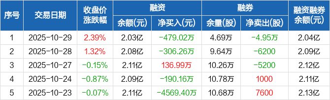 嘉友国际:融资净偿还479.02万元,融资余额2.03亿元(10-29)