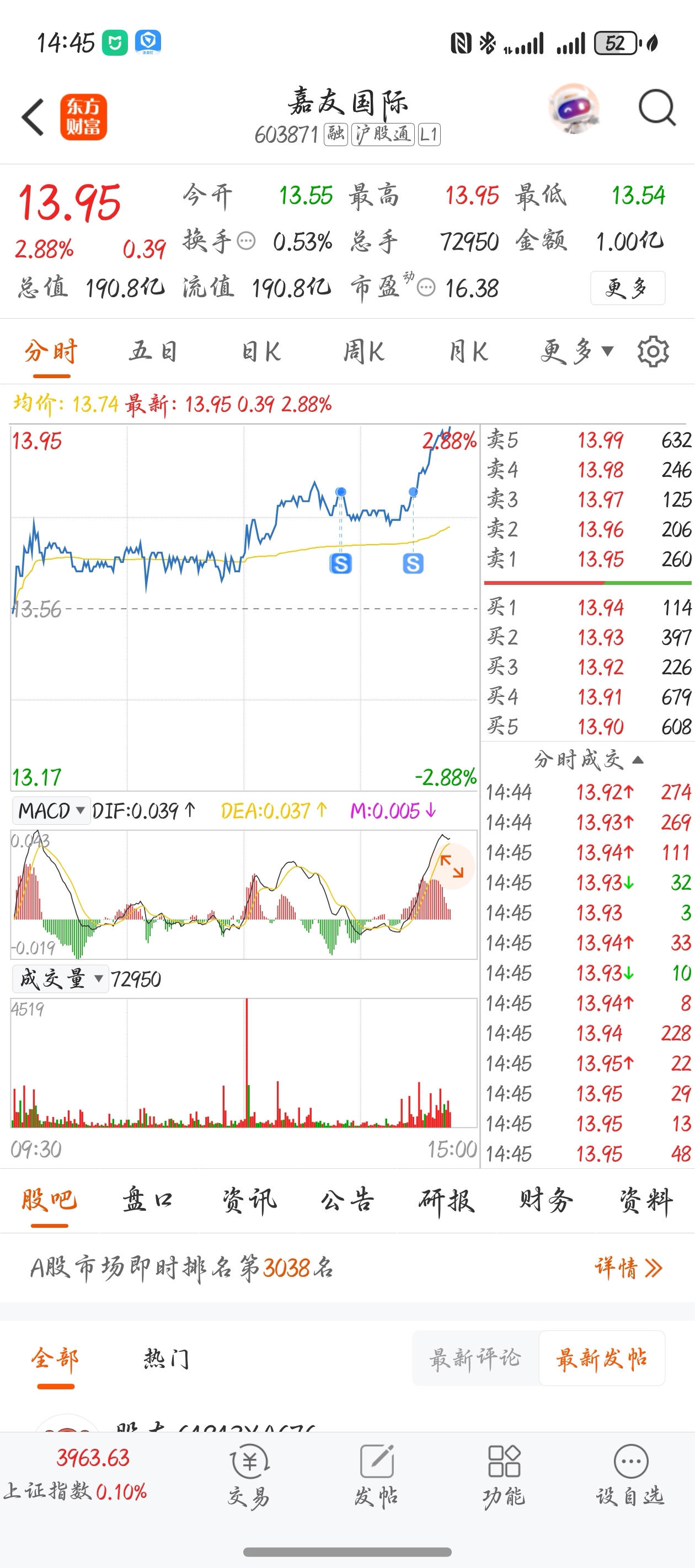 $嘉友国际(SH603871)$ 今天真强,13.81挂单5日线还是卖飞了