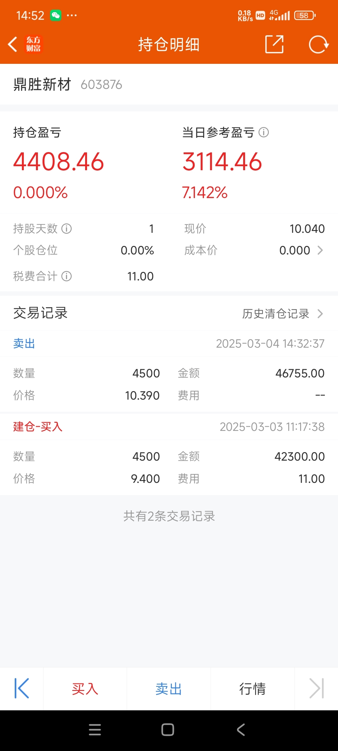 $鼎胜新材(SH603876)$ 成功的一次短线买卖点很满意