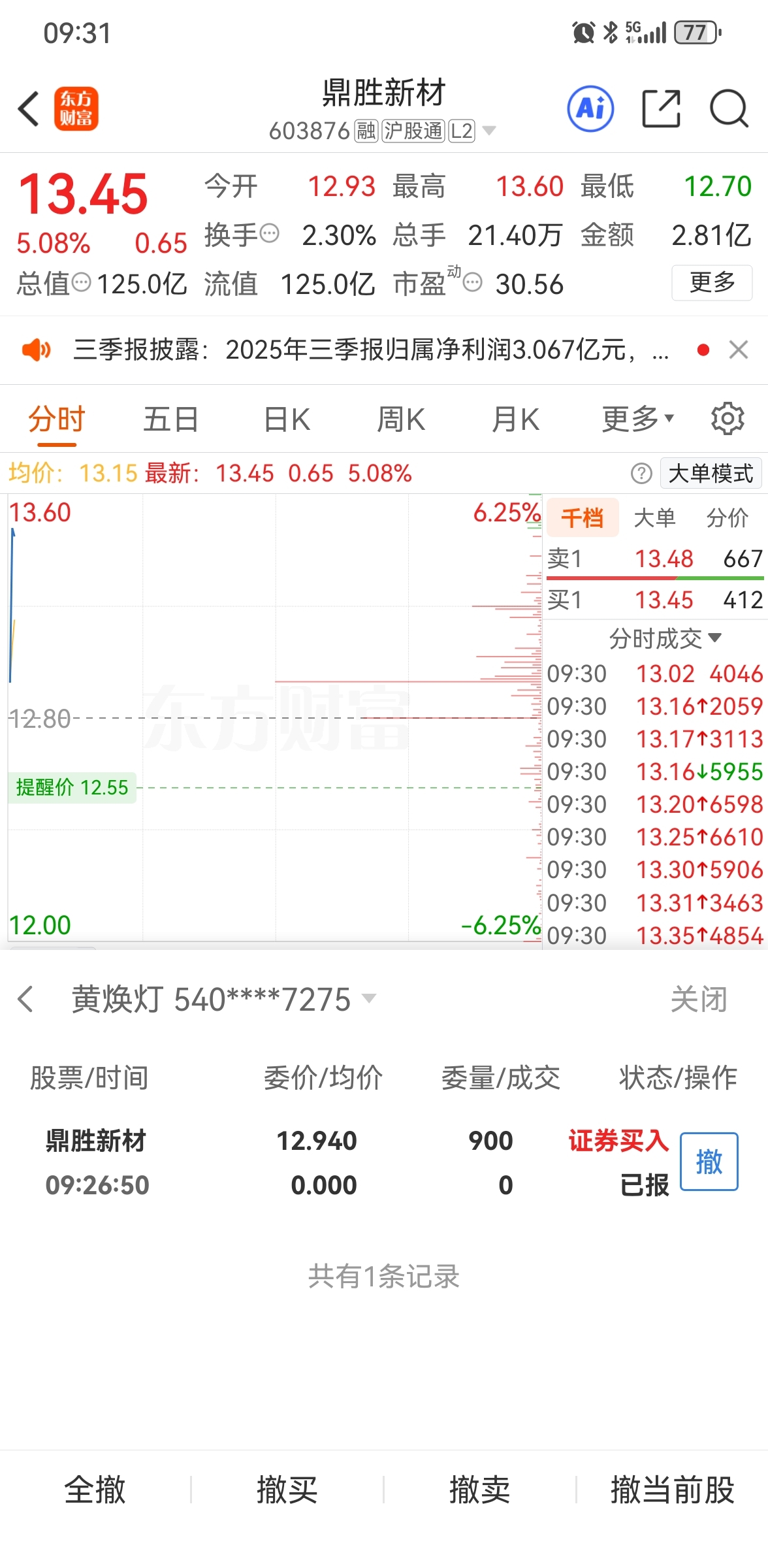 $鼎胜新材(SH603876)$ 为什么没有成交