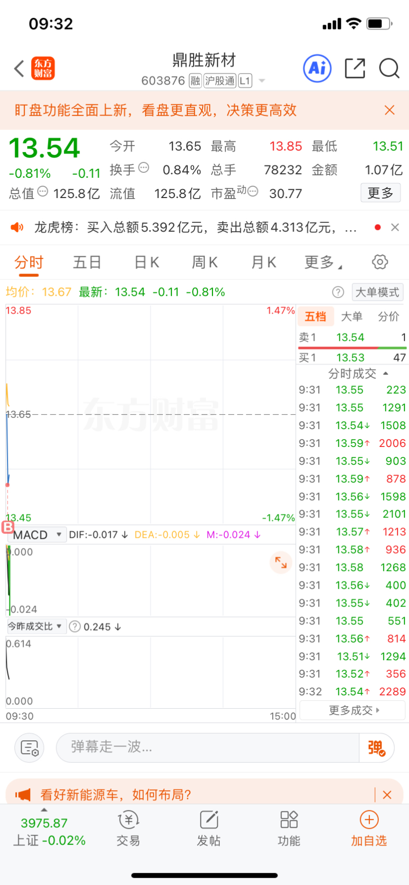 开盘水下介入$鼎胜新材(SH603876)$ #强势机会# #实盘记录# #投资干货# #投资随笔#