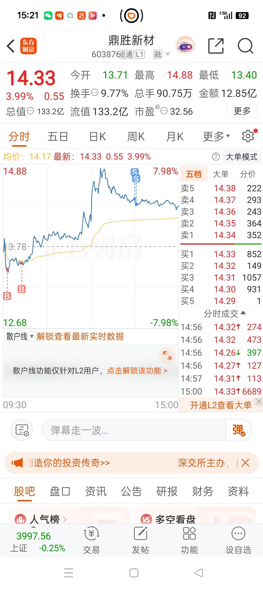 $鼎胜新材(SH603876)$ 这没卖好,因为做了个午睡,错过高点