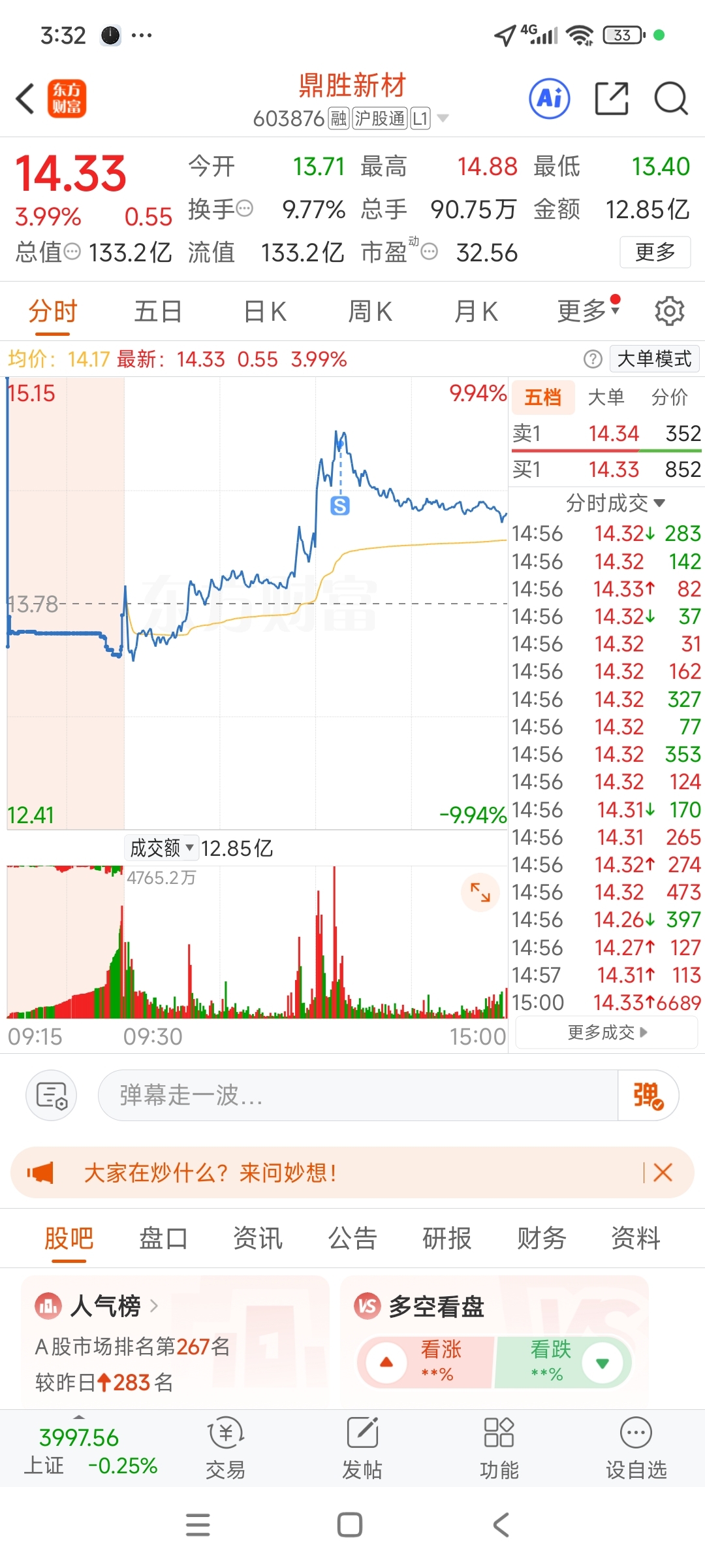 $鼎胜新材(SH603876)$ 下个交易日再水下接回来