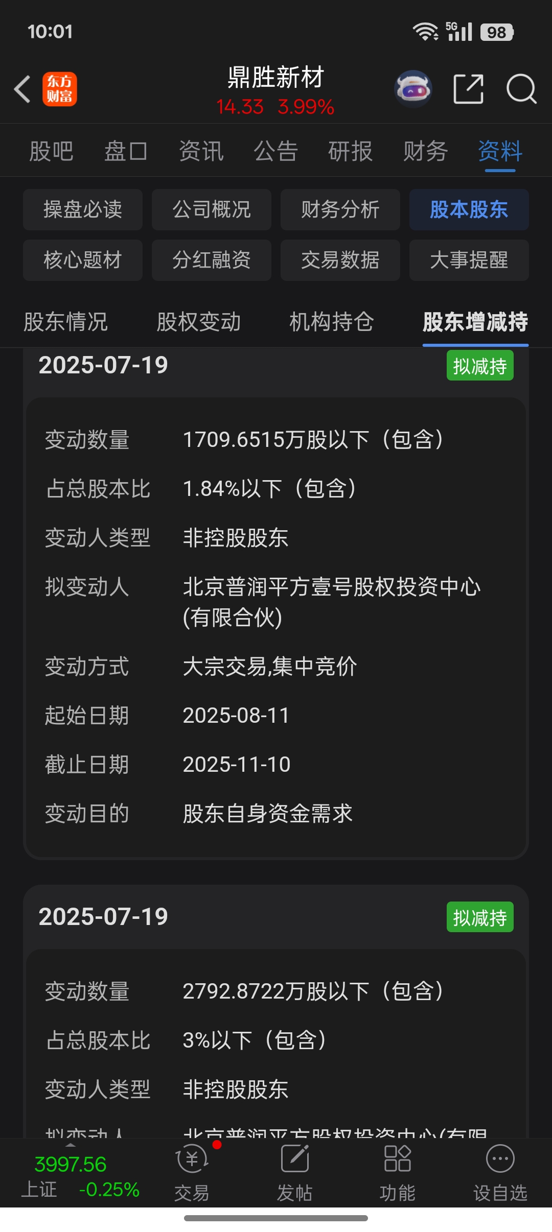 $鼎胜新材(SH603876)$ 减持完毕了吗?