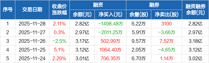 鼎胜新材:融资净偿还1498.48万元,融资余额2.82亿元(11-28)