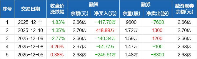 鼎胜新材:融资净偿还417.7万元,融资余额2.66亿元(12-11)