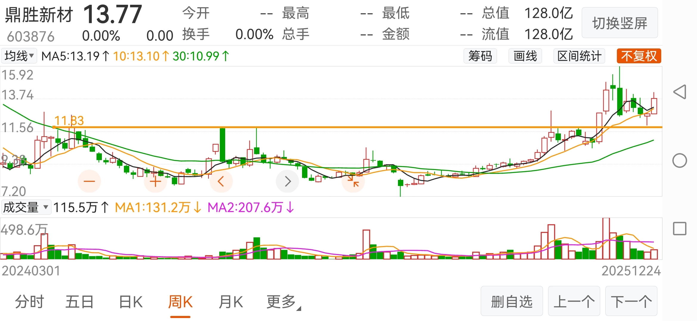 周K线图上看构筑了一个20个月的复合型头肩底技术形态已突破颈线位。现在正在回踩。颈线位附近企稳放量上攻。
