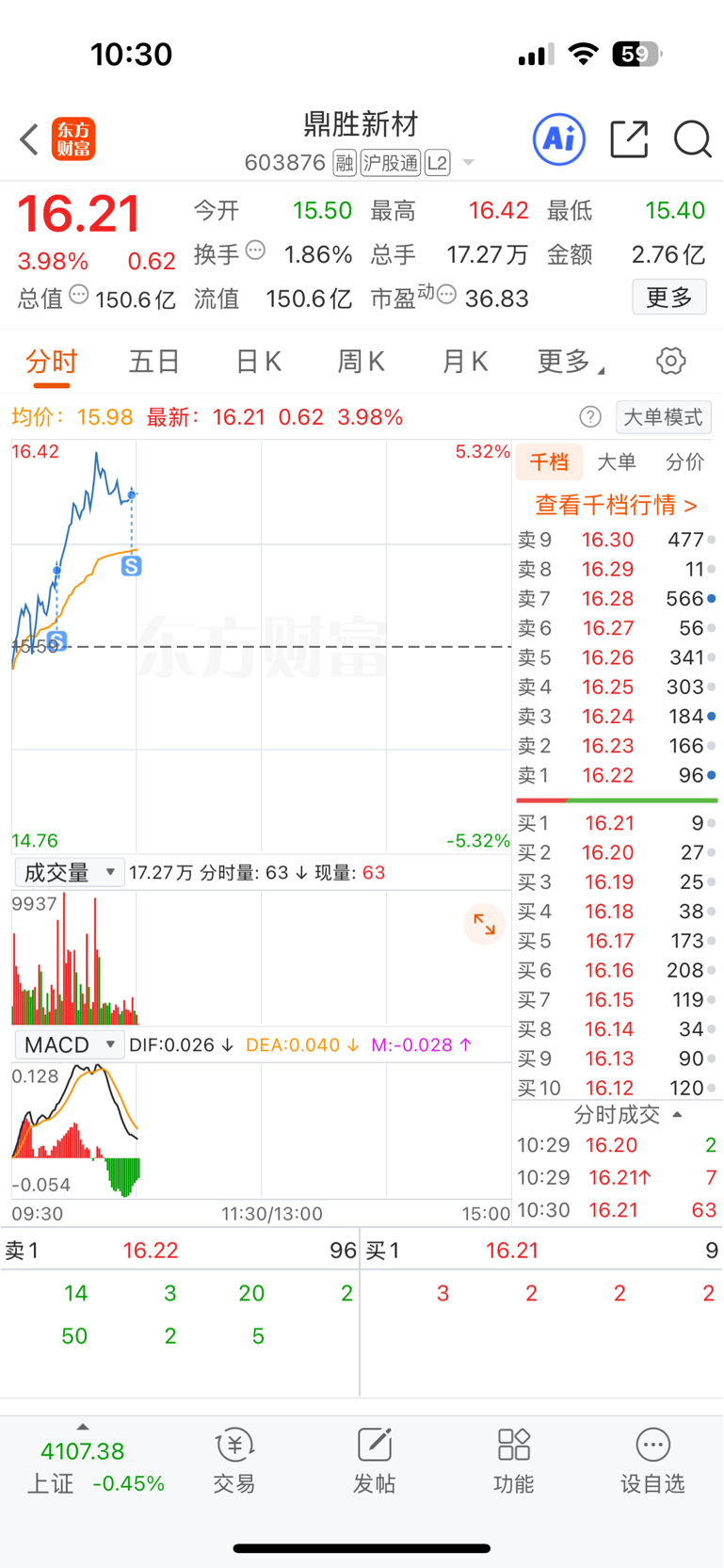 $鼎胜新材(SH603876)$ 赚4个多点先跑了,下午看看有没有机会接回来