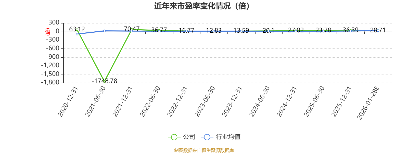 以本次披露业绩预告均值计算,公司近年市盈率(TTM)图如下所示: