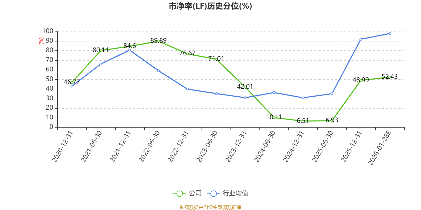 市盈率、市净率为负时,不显示当期分位数,会导致折线图中断。