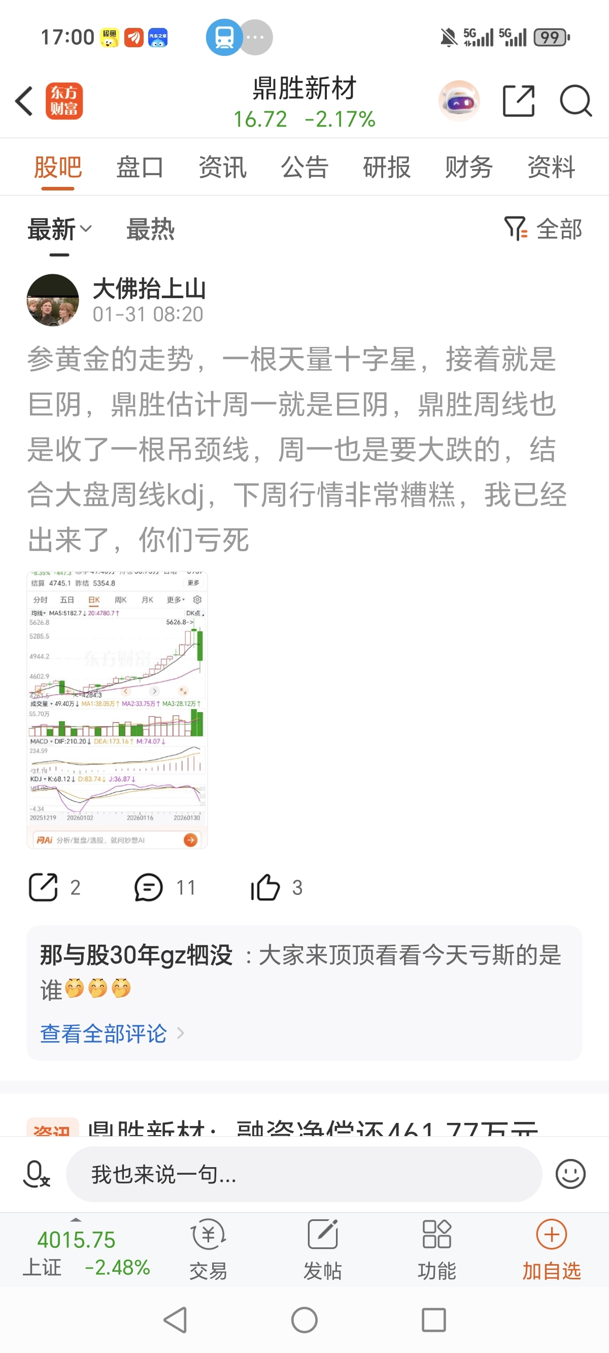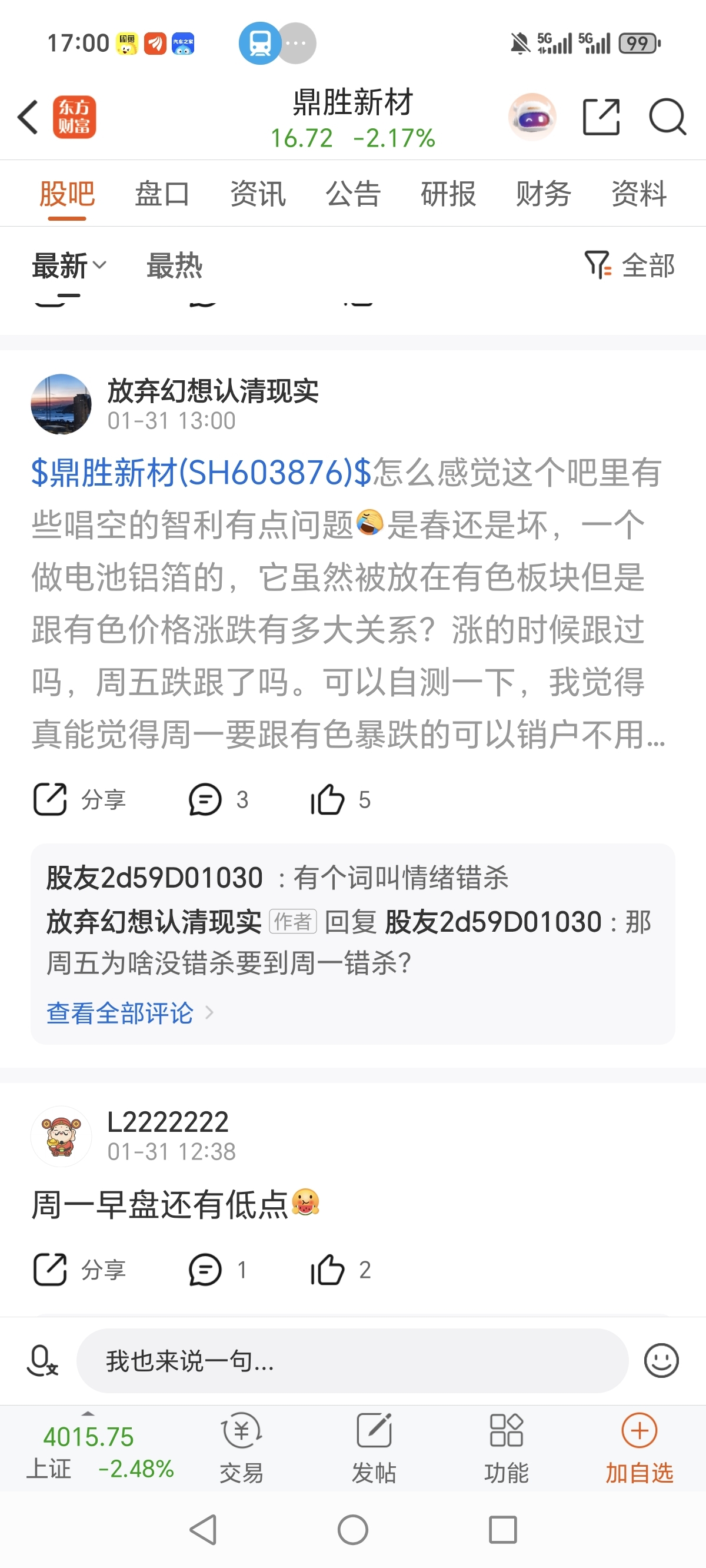 温馨提示: 1.根据《证券法》规定,禁止编造、传播虚假信息或者误导性信息,扰乱证券市场;2.用户在本社区发表的所有资料、言论等仅代表个人观点,与本网站立场无关,不对您构成任何投资建议。用户应基于自己的独立判断,自行决定证券投资并承担相应风险。《东方财富社区管理规定》