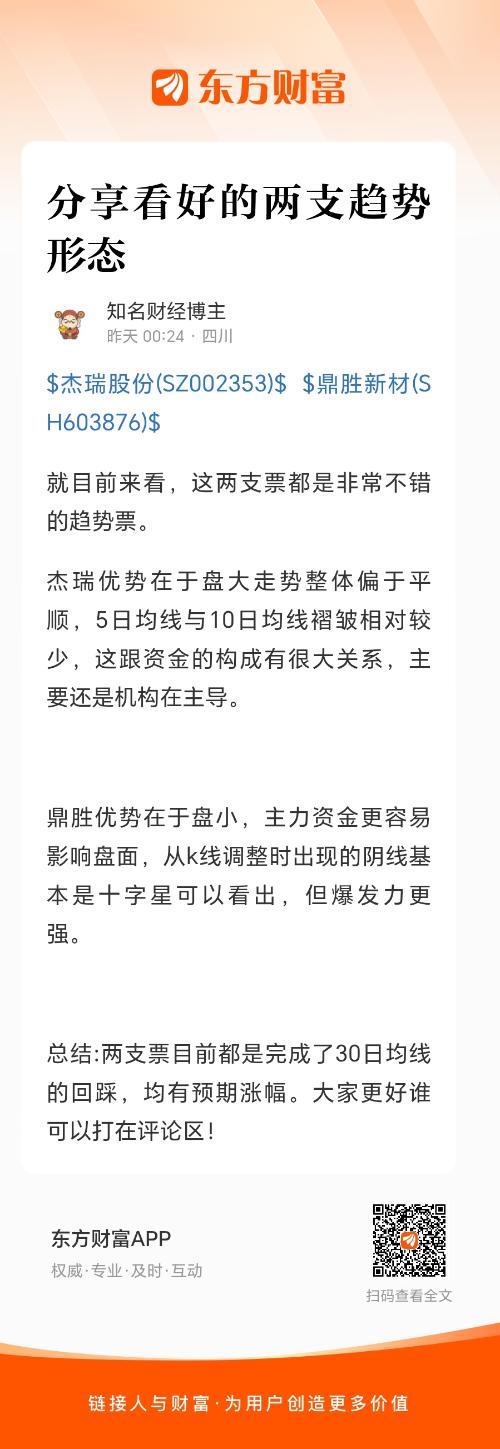 总结:两支票目前都是完成了30日均线的回踩,均有预期涨幅。大家更好谁可以打在评论区!