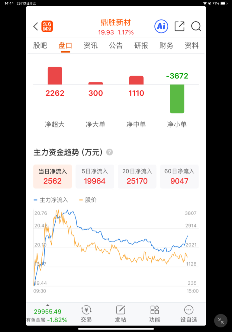 $鼎胜新材(SH603876)$ 尾盘进的踏实 主力加油