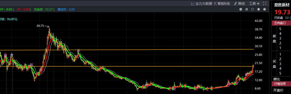 参考意见:2月6号游资推板,9号跳空高开后,鼎胜上到了一个新的平台。现在受制于23年6//7月的双顶压力位,有横盘整理需求,等有效站稳20(最好是大阳线突破),后续可看28块。