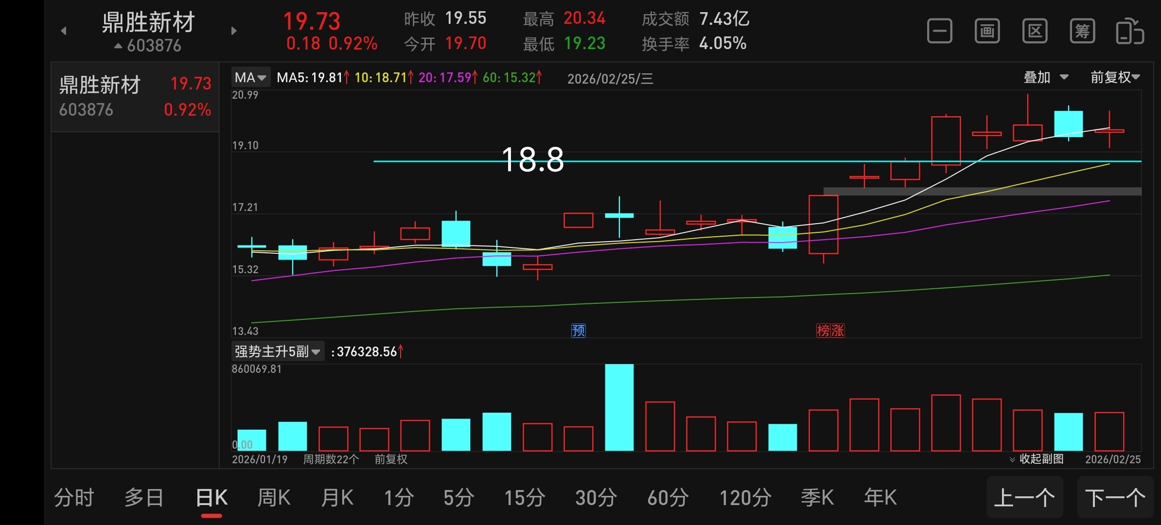 $鼎胜新材(SH603876)$ 等我从明阳电路里出来,如果能打到10日线18.8附近鼎盛就是捡到大便宜,一个字,干!重点关注!只做预判,不做马后炮,记录个人投资历程,个人观点不构成操作建议!