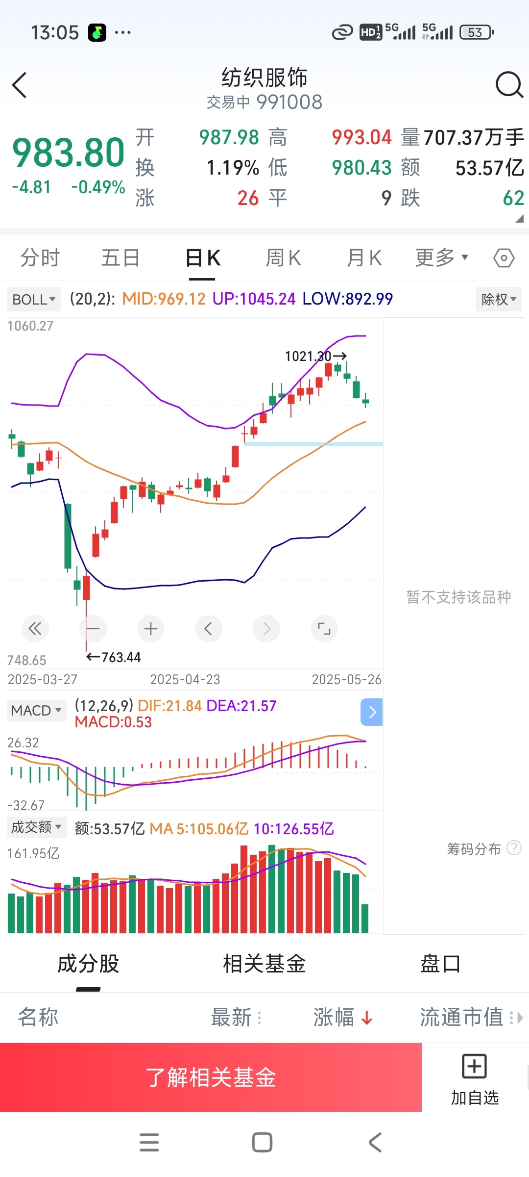 这个和服装板块涨跌高度重合,目前服装板块还是上升通道,靠近金线了,要不要补?纠结