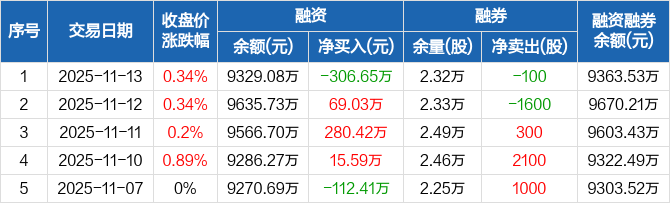 太平鸟:融资净偿还306.65万元,融资余额9329.08万元(11-13)